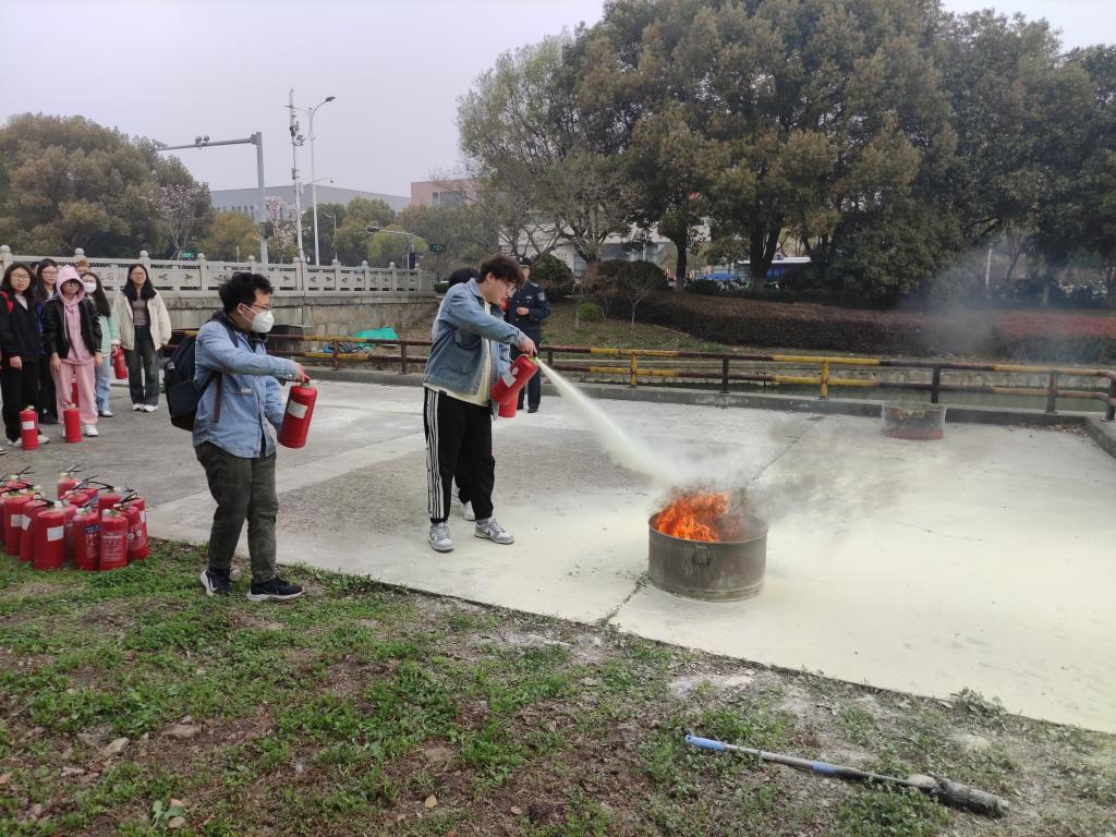卢科长首先介绍了不同类型灭火器的应用范围和不同火灾状况的应对方法,然后演示了干粉灭火器和消防栓的使用方法。最后,现场师生都进行了灭火器的实操演练,掌握了灭火器的正确使用方法,增强了灭火和自救能力,提高了消防安全意识。