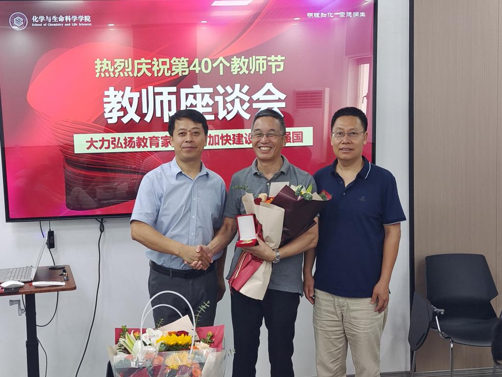 教学、科研做出积极贡献的教授们现场献花。丛春秋反馈了上一年教师节座谈会上各位教授提出的意见与建议落实情况。李良智总结了新球