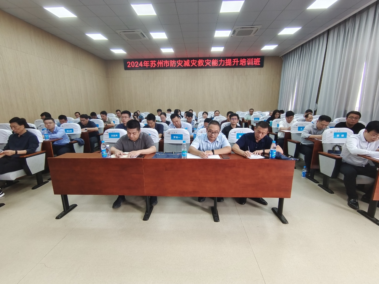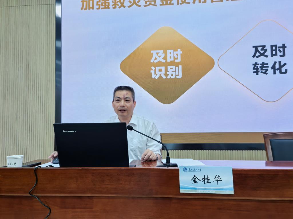 卞春麒老师分别围绕防汛抗洪职责、自然灾害信息报告及救灾资金管理、苏州市极端天气特点与防范、自然灾害舆情应对、灾后心理健康辅导等方面开展专题培训。