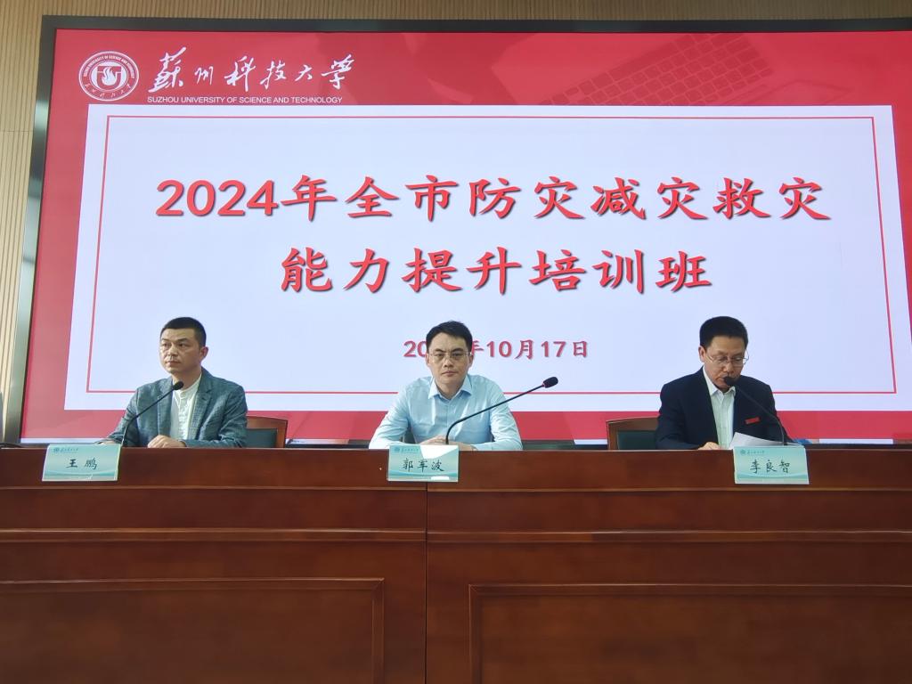 10月17日,2024年苏州市防灾减灾救灾能力提升培训班在我校举行。苏州市应急管理局副局长郭军波、苏州市应急管理局防汛防旱处处长王鹏、新球体育官网