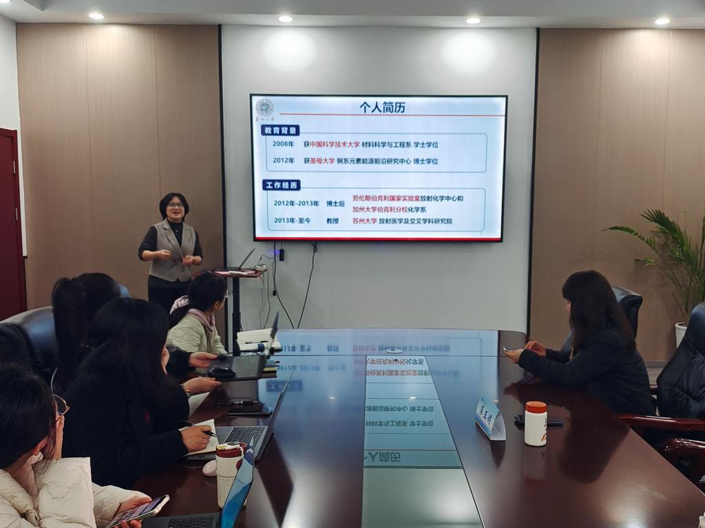 邀请了苏州大学放射医学与辐射防护国家重点实验室第五娟教授分享科研工作及自身成长经历,并对青年教师的基金申报书进行了详细指导,报告会由新球