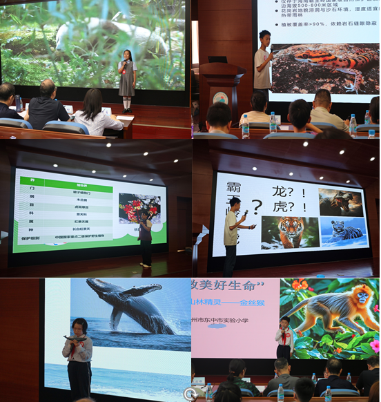 经过专家初评,共有来自全市各学校的36名优秀小小讲解员脱颖而出,齐聚决赛现场同台竞技、各展风采。选手们自信地站在讲台上,以稚嫩而坚定的声音,饱含深情地讲述珍稀动植物的故事。为了增强现场讲解效果,不少小选手别出心裁,有的利用精心制作的演讲背景视频,构思独特、内容新颖、绘声绘色,展现了珍稀动植物的生存现状与保护意义。有的利用精美的实物道具细解种属特征,声情并茂、妙趣横生、引人入胜,突出讲解过程的专业性,选手们精彩的讲解赢得了在场观众的阵阵掌声。经过评委评审,本次决赛最终产生一等奖6名、二等奖12名、三等奖17名。
