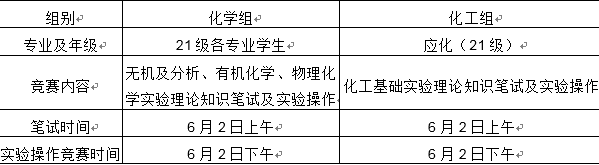 3、化学组实验操作为个人一组进行,实验前随机抽取实验题目(无机及分析实验/物化实验/有机合成实验任一方向);化工组实验操作前随机抽取组队及实验题目,3人一组协作进行。具体安排如下表: