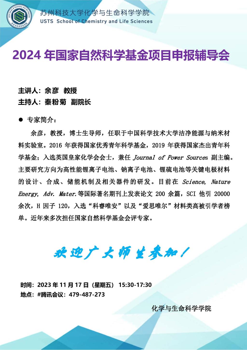 2024年国家自然科学基金项目申报辅导会