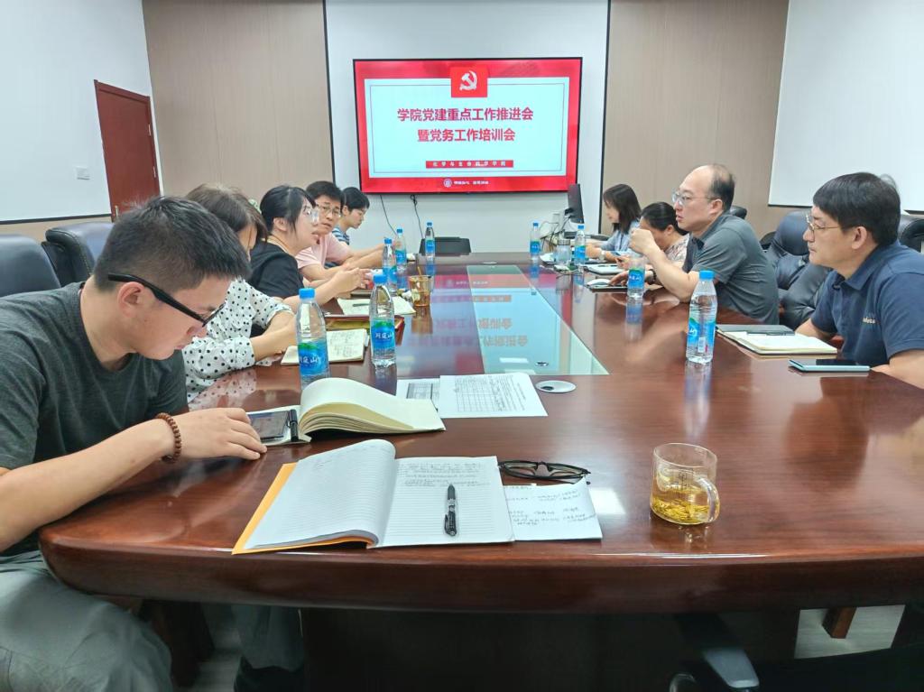 党委在教三楼319会议室召开党建重点工作推进会暨党务工作培训会。全体党委委员、党支部书记、支委参加会议,会议由党委书记徐治初主持。
