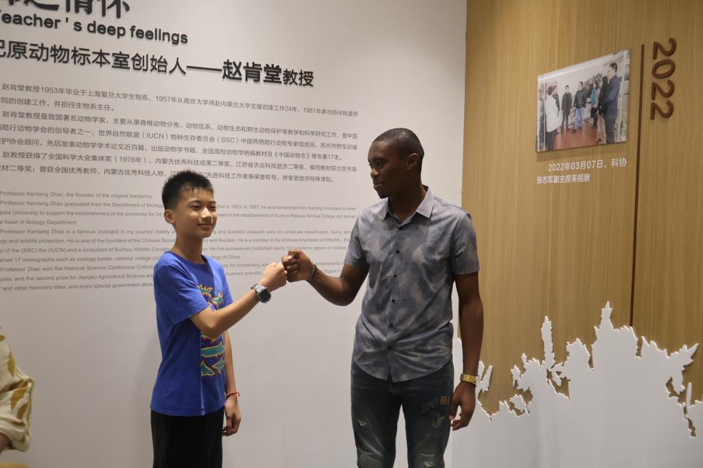 “我们的国家也面临着物种保护的挑战,苏州科技大学通过馆校协同、公众科普推动保护的模式,给了我们很多的启发”,来自中非国家的留学生欧阳表示,他特别赞赏大学科普馆结合学科专业优势,利用馆藏标本资源开展科普公益活动,“这种让科学走进大众的做法,能提升全民生态保护意识,这对任何国家的生物多样性治理都很重要”。