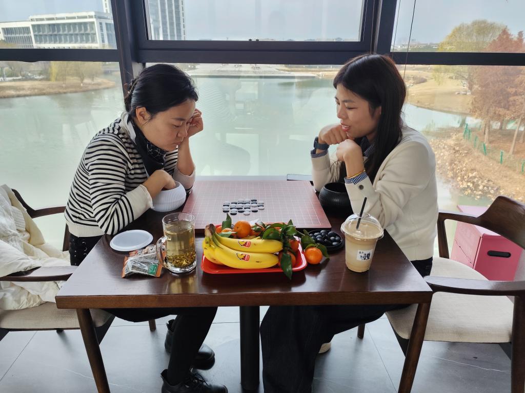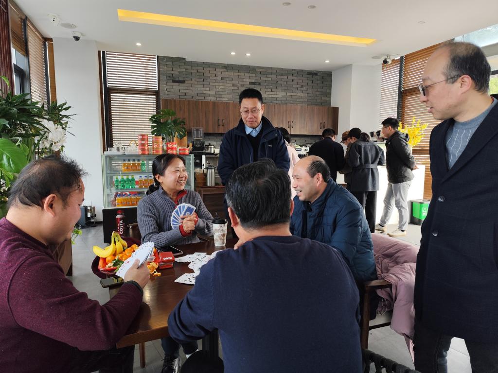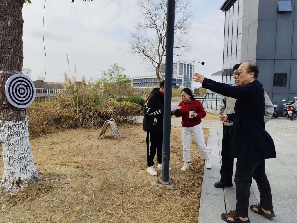 茶香氤氲,笑语环绕。活动现场准备了精美的茶点与零食,老师们在温馨的氛围中围坐交流,分享过去一年的收获与感悟,彼此间的距离在袅袅茶香与欢声笑语中悄然拉近。与此同时,各类智力与趣味兼具的比赛同步展开:掼蛋比赛中搭档默契、妙招频出;围棋象棋选手沉着布局、尽展智慧;五子棋较量轻松活泼、趣味横生……丰富多元的活动设计,让每一位老师都能沉浸其中,找到属于自己的精彩。尤其引人注目的是本次新增的“飞镖挑战赛”。比赛以“顺风而行”为情景,参赛老师不仅需要精准瞄准,更要判断风向、把握时机,在动态环境中敏捷调整、稳健出手。一道道飞镖划出的弧线,不仅是技艺的比拼,更是应变能力与决断力的生动体现。这场特色赛事,也恰如新球体育