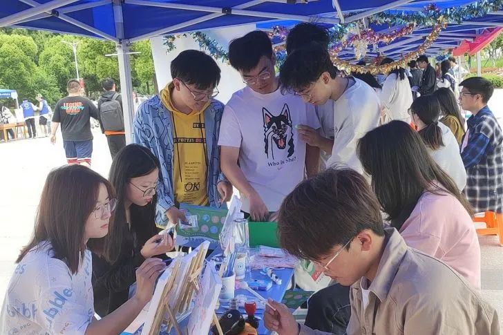 活动现场热烈无比。现场配有音响,舒适的音乐给同学们以美的享受,净化心灵,同时提供颜料,到场学子们可以自行组队进行油画创作、书画创作,以拉近人与人之间的联系。现场还可以进行书法小纸条创作。在完成作品后,学生们可以选择带走留念或是留下传递正能量。