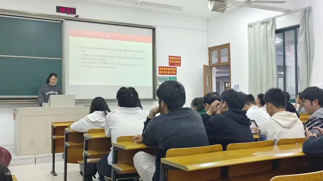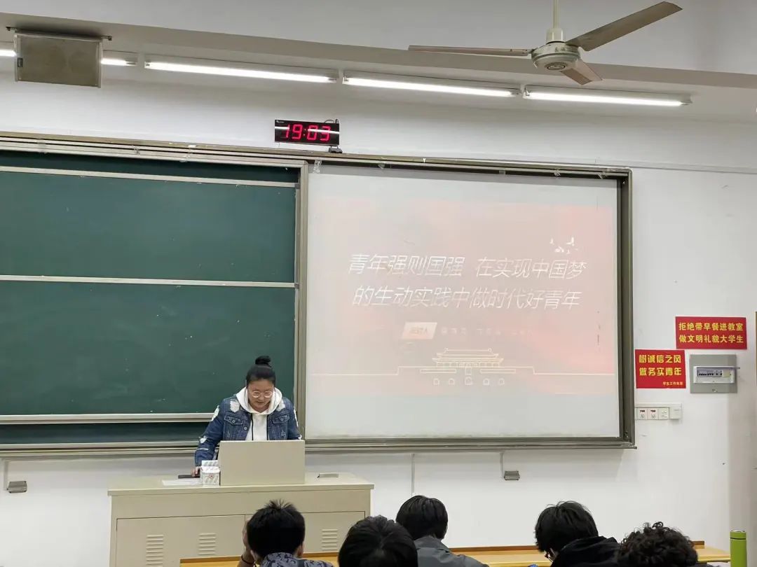 期间主要讲解了青年应坚定理想,天高海阔观澎湃,以理想信念扬青春风帆,推动社会进步与发展,创造中华民族新的伟大奇迹。青年的理想关乎国家未来,青年理想的远大、信念的坚定,是一个国家、一个民族无坚不摧的前进动力。