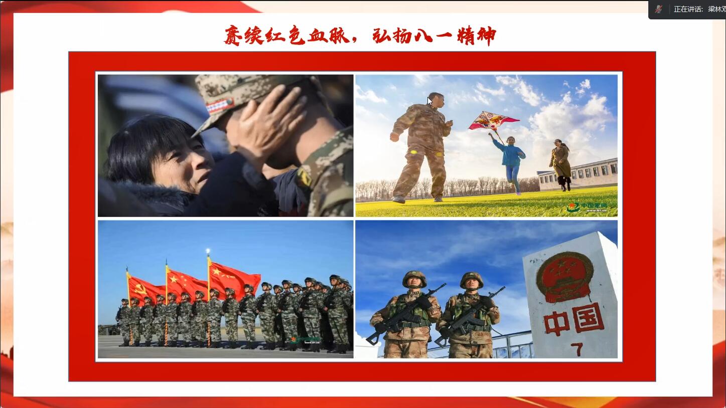 首先,梁林双向大家介绍了人民军队的建立与发展。1927年8月1日南昌起义打响了武装反抗国民党反动统治的第一枪,建立了中国共产党自己的革命军。动荡岁月的解放时期,人民军队参加了抗日战争、解放战争、抗美援朝等战役,为党和人民立下了伟大的历史功勋。和平建设时期,积极投身改革开放新的伟大革命,有力服务和保障国家改革发展稳定大局,有效应对国家安全面临的各种威胁,坚决打击一切形式的分裂破坏活动。
