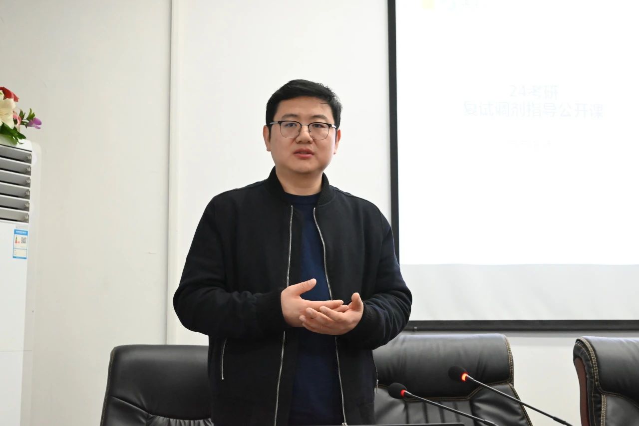 新球体育官网 3月7日在教3-109报告厅开展考研复试调剂指导讲座。讲座由新球体育 党委副书记、副院长苗雪强主持,研途教育商贺光老师讲解面试技巧。