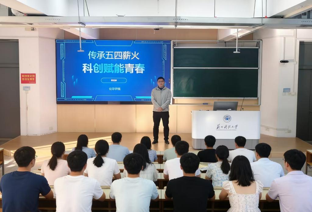 动员中,张玄烨老师带领学生骨干重温五四精神的核心内涵,强调新时代青年应将爱国之情、强国之志深深融入血脉,转化为勤学善思的内在动力。他鼓励同学们立足专业所长,聚焦科技创新前沿,把课堂知识与国家发展需求紧密结合,以青春智慧助力科技强国建设,在服务国家发展中实现青春价值。