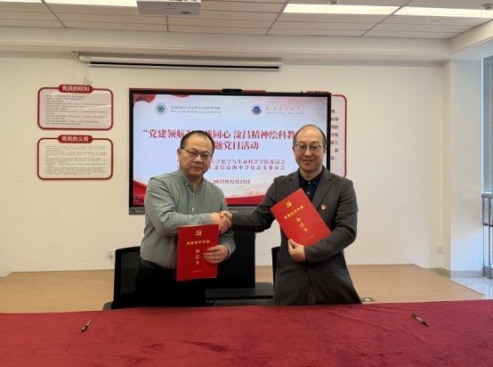 党委书记徐治初与王淦昌高级中学党总支书记高发圣共同签署《党建共建合作协议》并现场授牌;新球体育